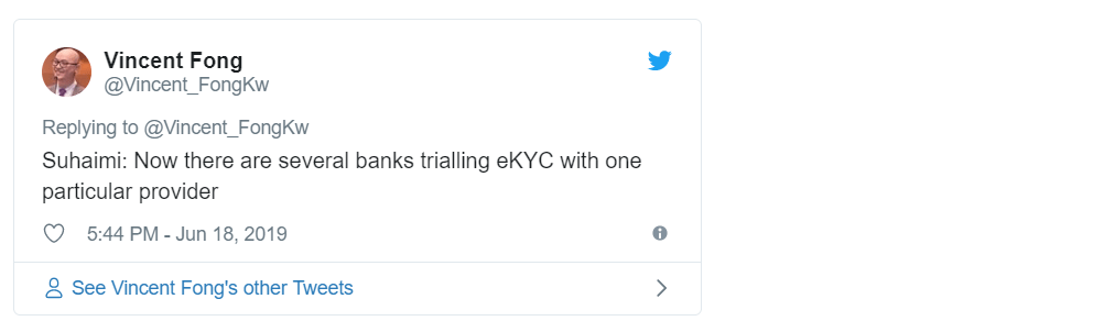 There have been some nuggets of information though, during the MyFintech Week earlier this year, BNM’s financial development and innovation department director Suhaimi Ali mentioned that there are currently 11 banks trialing eKYC solutions.